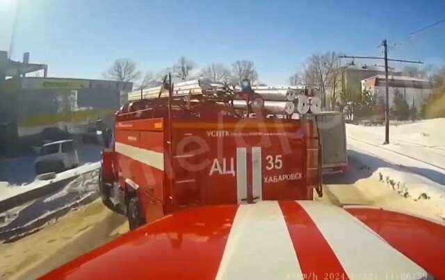 ДТП произошло в Хабаровске на улице Тихоокеанской. Столкнулись две пожарные машины. Момент столкновения попал в объектив видеорегистратора.