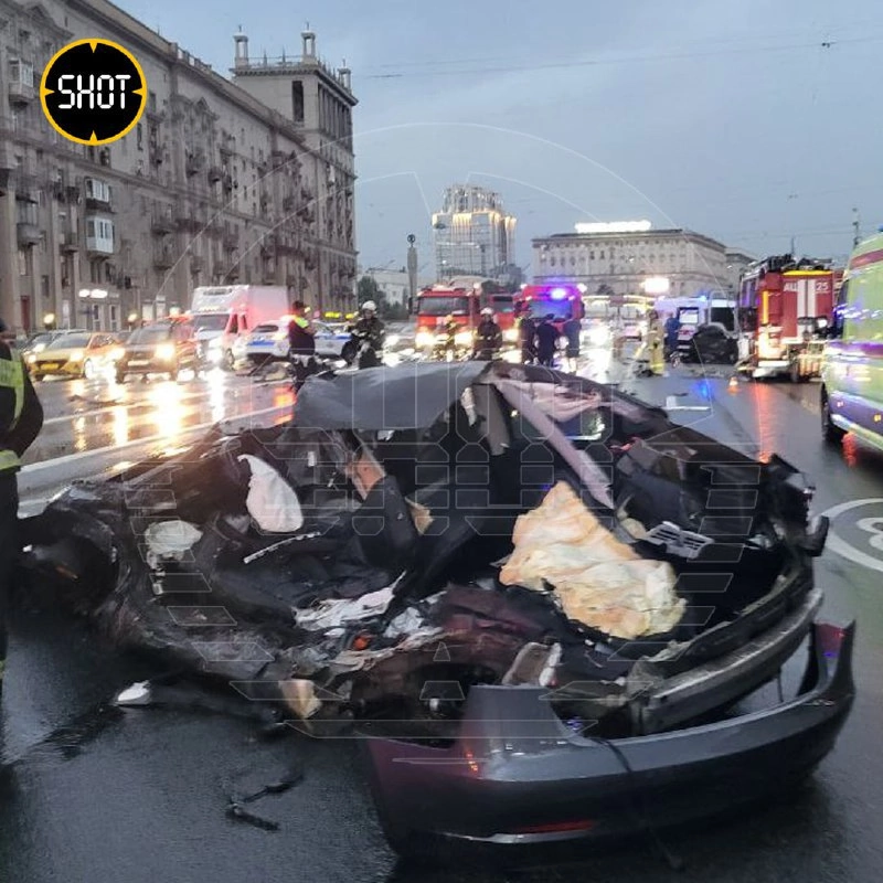 Электрокар Tesla разорвало на части в результате ДТП в Москве