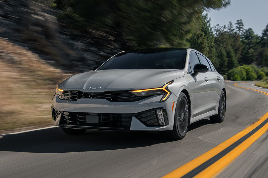 В Корее технику Kia K5 реформы не затронули, там модель предложена с бензиновыми атмосферником 2.0 (160 л.с.) и турбочетверкой 1.6 T-GDI (180 л.с.), вдобавок клиентам доступны машины с газовым мотором и гибрид HEV. А вот в Штатах стандартный седан получил новый двигатель: на смену 1.6 T-GDI пришел атмосферный 2.5 GDI мощностью 193 л.с. (турбомотор локального дореформенного седана выдает 183 л.с.), он сочетается с классическим восьмиступенчатым автоматом. При этом GT-версии оставили 294-сильную турбочетверку 2.5 T-GDI, которая работает в паре с восьмиступенчатой роботизированной коробкой с двумя сцеплениями. Как и прежде, за доплату для американского седана Kia K5 предусмотрен полный привод – но только для «обычных» машин, то есть теперь с атмосферным мотором, тогда как топовый K5 GT исключительно переднеприводный (в других регионах варианта 4WD нет в принципе).