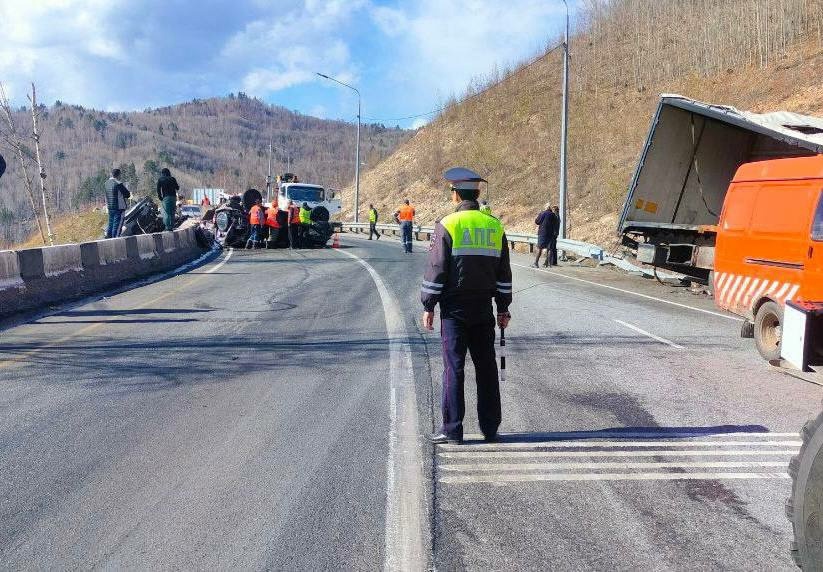 ДТП произошло 8 мая в полдень на 95 километре трассы «Байкал» возле поселка Култук Иркутской области. 58-летний водитель большегруза Mercedes совершил столкновение с попутным автомобилем УАЗ, после чего опрокинулся, наехал на ограждение и вылетел в кювет.