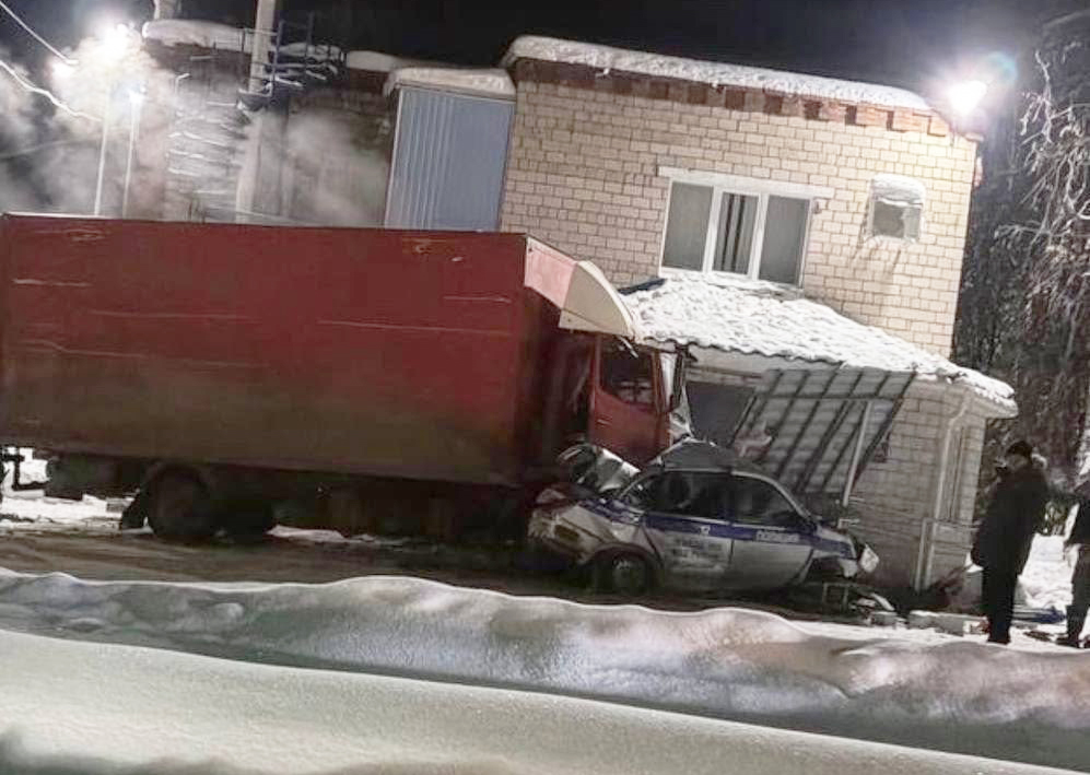 От удара грузовик продолжил движение и смял припаркованный патрульный автомобиль ДПС, а также врезался во входную группу регистрационно-экзаменационного отделения Госавтоинспекции.