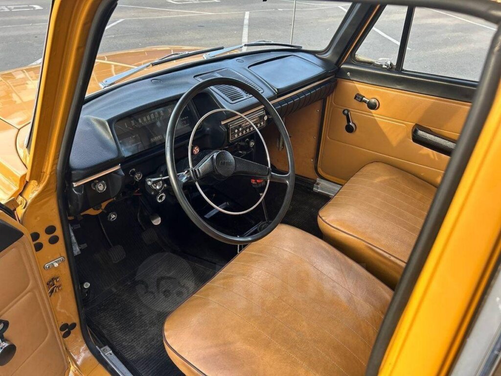 Данный Москвич-412, выпущенный в первый год серийной сборки на Ижевском автозаводе, привлекает внимание своим внешним видом: кузов окрашен в цвет «Золотое руно», а двухцветные колеса с белым ободом придают автомобилю особую элегантность.