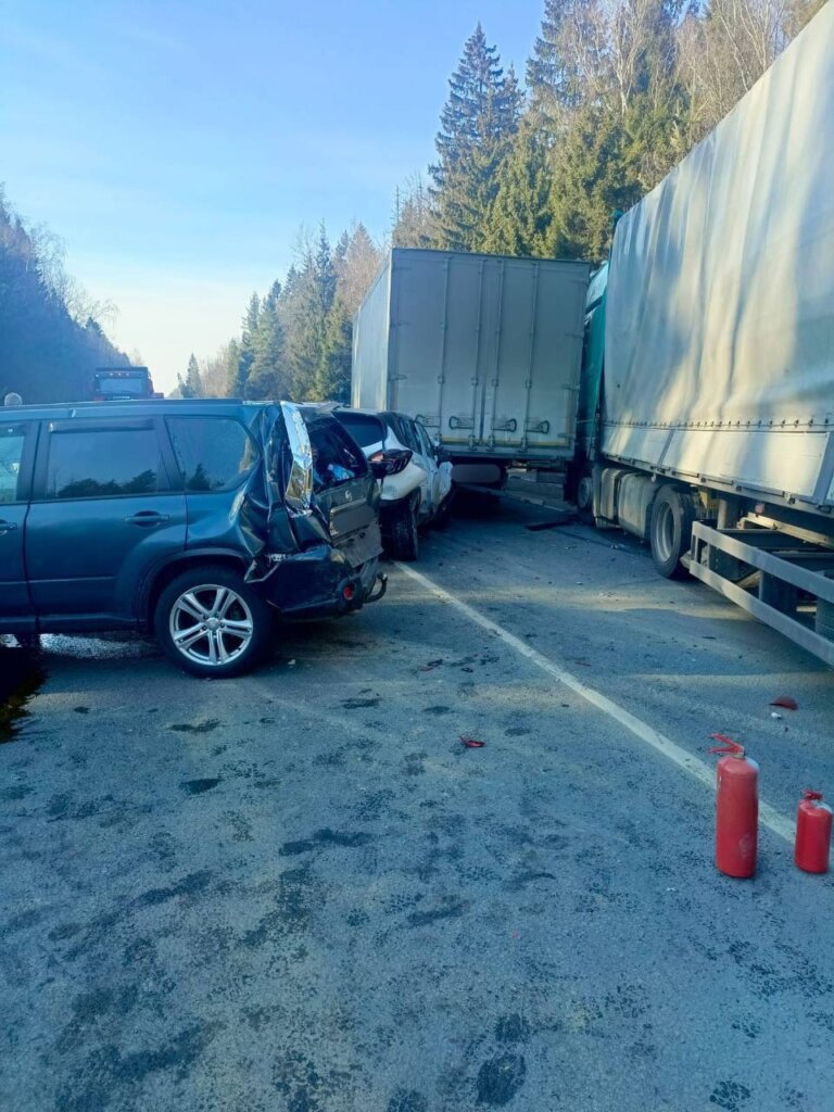 КАМАЗ смял несколько автомобилей на трассе А-108: погибли два человека