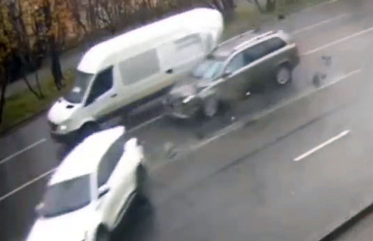 Сообщается, что пострадал один человек. Камера запечатлела момент столкновения.