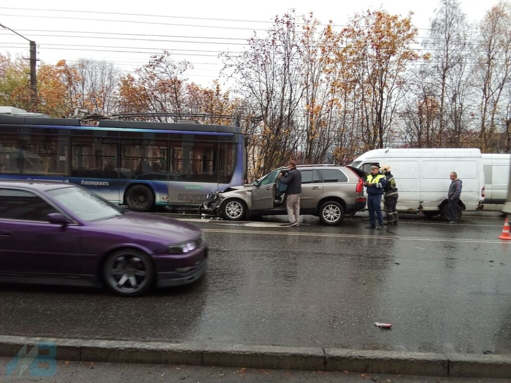 13 октября на улице Шмидта в Мурманске Volvo столкнулся с попутным автомобилем Chery, который от удара отбросило на Volkswagen. Volvo, в свою очередь, столкнулся ещё с тремя транспортными средствами.