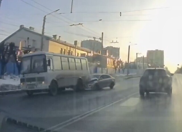 На улице Воровского в Кирове очевидец снял на камеру видеорегистратора момент жесткого ДТП. Водитель автомобиля Kia Rio, двигавшийся в сторону улицы Попова, на полном ходу врезался в стоящий автобус ПАЗ.