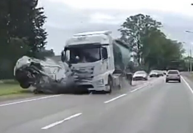 Кроссовер врезался в фуру на трассе «Нарва»: погибли женщина и ребенок