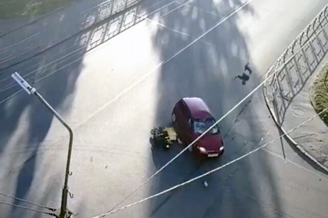 По предварительной информации, легковой автомобиль не пропустил электровелосипед. Удар был такой силы, что курьера отбросило на тротуар.