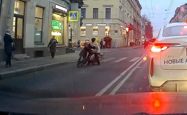 Курьезное ДТП в Петербурге: курьер на велосипеде проехал на красный и сбил девушку