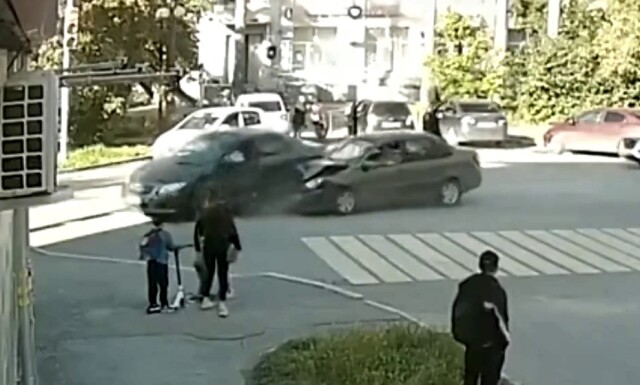 Авария произошла в Верхней Пышме. Lada Granta столкнулась с автомобилем Toyota Corolla, который от удара потерял управление и выехал на тротуар. О пострадавших не сообщается. Момент столкновения запечатлела камера.