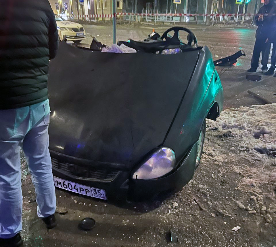 «Ладу» разорвало на части в результате ДТП в Вологде