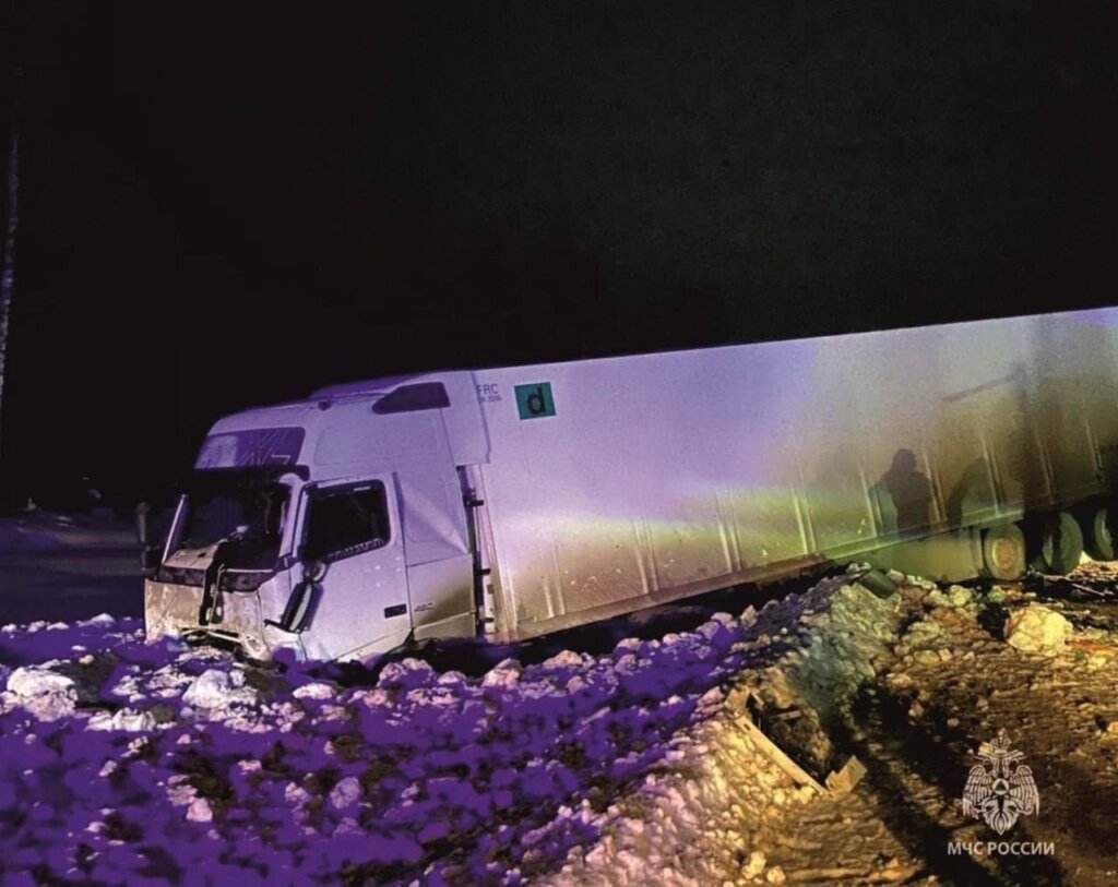 ДТП произошло 23 февраля поздно вечером на 255 километре трассы Кострома — Шарья — Киров — Пермь. Возле деревни Фатьяново водитель автомобиля Land Rover Discovery выехал на встречную полосу и столкнулся с большегрузом Volvo.