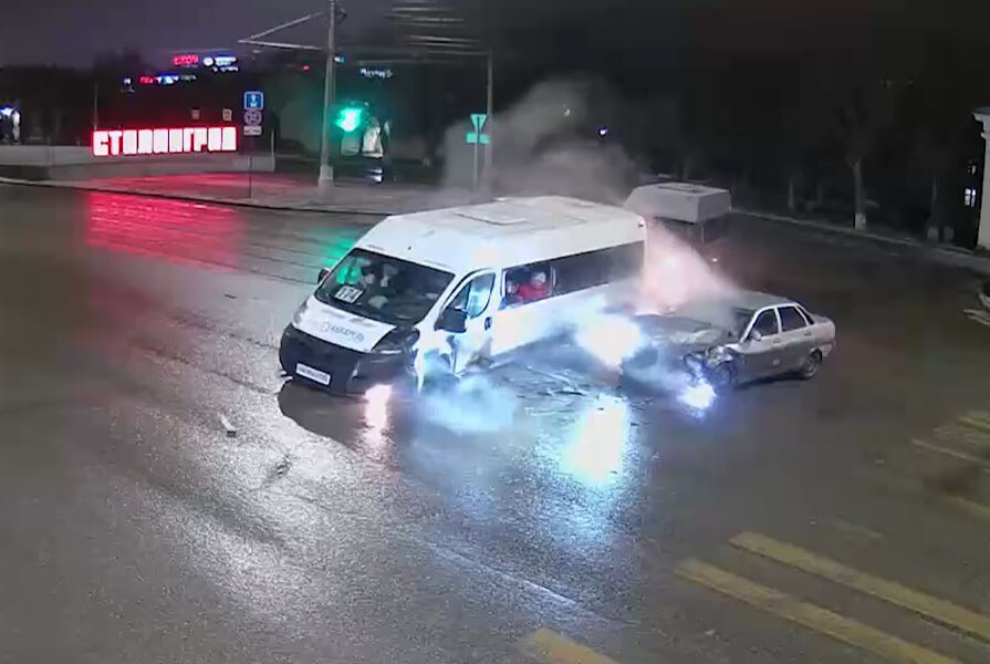 ДТП произошло 22 декабря, около 05:45 утра, на пересечении улицы Бакинской и проспекта имени Ленина в Волгограде. Столкнулись легковой автомобиль «Лада Приора» и микроавтобус «ГАЗель».