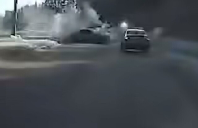 ДТП произошло на Бердском шоссе в Новосибирске. Toyota Sequoia вылетела на встречную полосу и врезалась в автомобили Toyota Carina и Kia. Происшествие попало в объектив видеорегистратора очевидца.