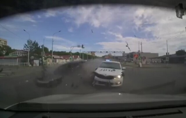 21 июля в 18:10 на 90 км трассы Артем — Находка в городе Фокино автомобиль ДПС Skoda Octavia со спецсигналами на перекрестке столкнулся с автомобилем Honda Insight, водитель которого не уступил ему дорогу.