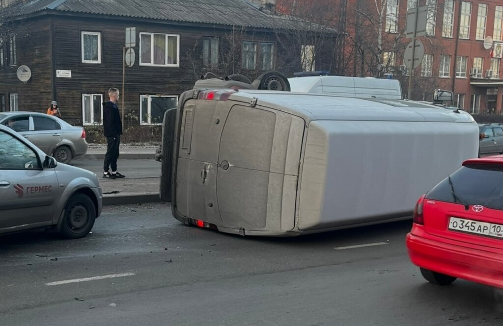 12 ноябре на улице Чапаева в Петрозаводске 46-летний водитель микроавтобуса Mercedes врезался в Ford под управлением 48-летней женщины. От удара оба автомобиля перевернулись.