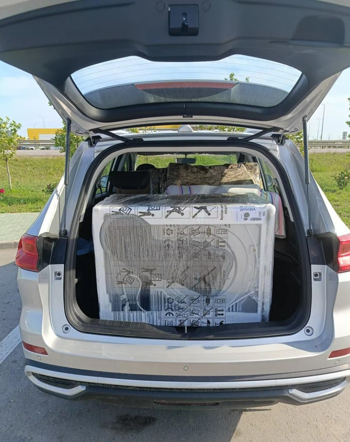 Иногда я использую автомобиль для перевозки грузов, вес которых достигает 500 килограммов, а также крупной бытовой техники. Вместительный багажник Haval M6 II позволяет без труда разместить две узкие стиральные машины в заводской упаковке и 60-сантиметровый духовой шкаф без упаковки на заднем сиденье.