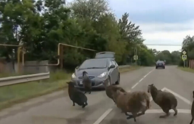 Момент ДТП на Кубани: водитель автомобиля наехал на стадо баранов