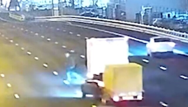 Момент ДТП на МКАД: мужчина переходил дорогу и попал под колеса автомобиля с прицепом