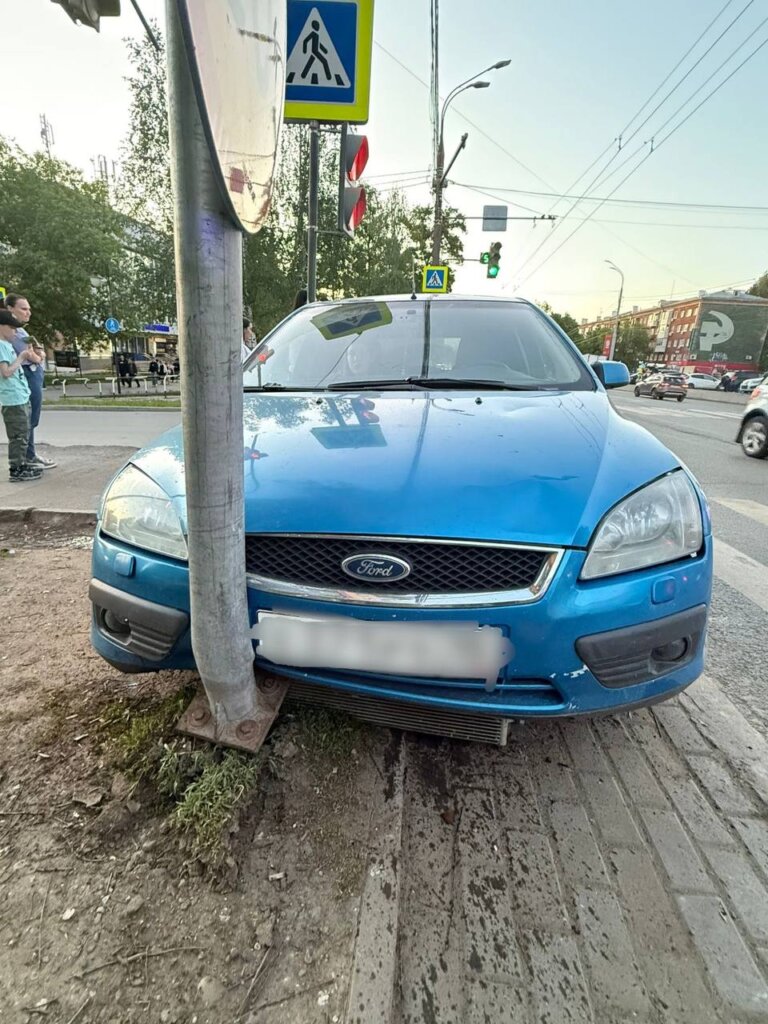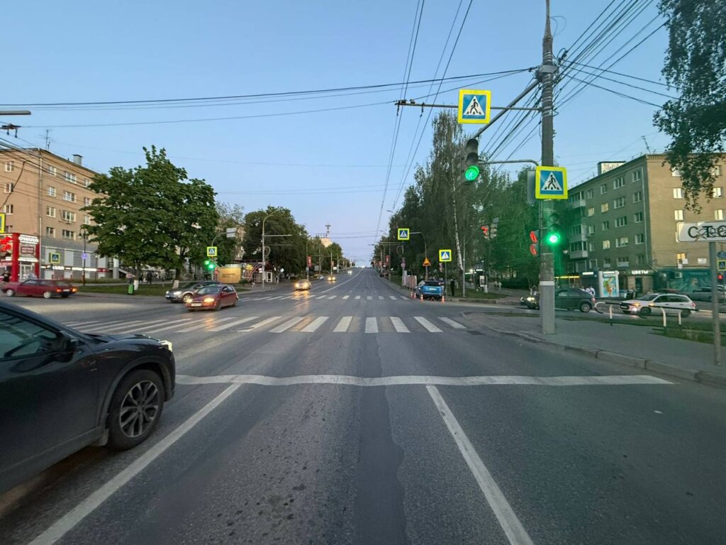Момент ДТП на перекрестке в Ижевске: иномарка вылетела на тротуар и сбила парня с девушкой