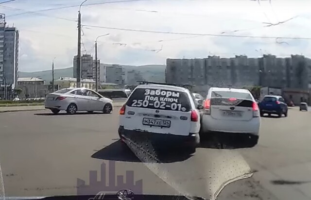 На Предмостной в Красноярске водитель универсала при въезде на перекресток не посмотрел вперёд и въехал в автомобиль Toyota Prius. Момент столкновения запечатлел видеорегистратор попутной машины.