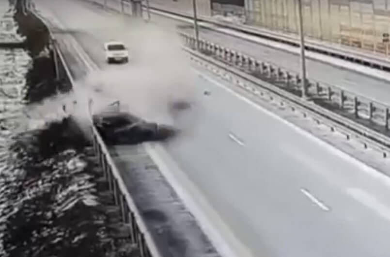 Момент ДТП на трассе М-11 «Нева»: BMW двигался с большой скоростью и врезался в ограждение