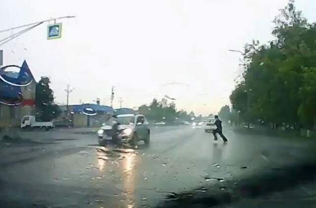 Момент ДТП в Кузбассе: автомобиль сбил школьницу, переходившую дорогу по пешеходному переходу