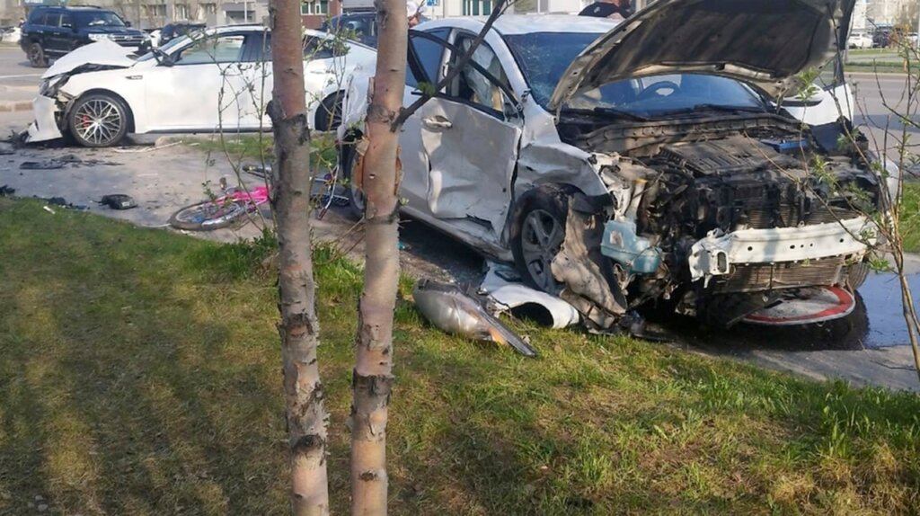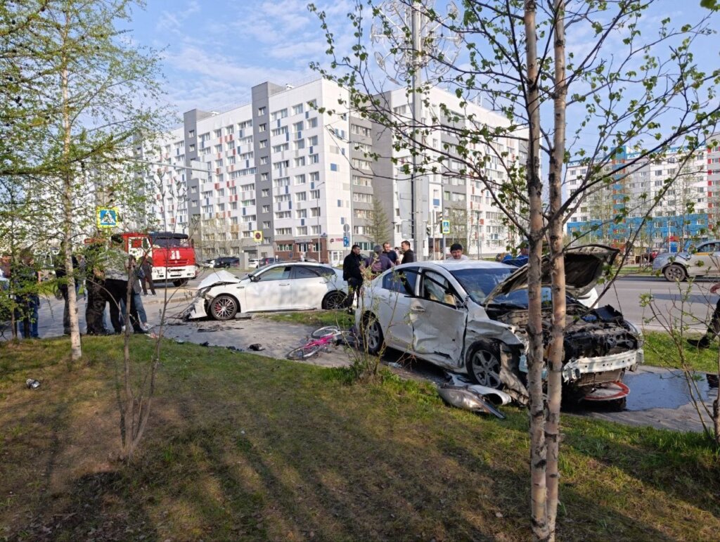 ДТП произошло на проспекте Ленинградском в Новом Уренгое. Водитель «Мазды» при повороте налево не уступил дорогу автомобилю «Киа» после чего выехал на тротуар и сбил ребенка на велосипеде.