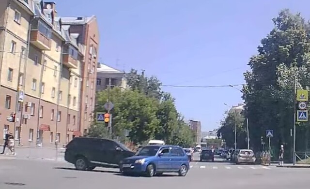 Момент ДТП в Новосибирске: один водитель пытался успеть повернуть, а другой двигался на жёлтый