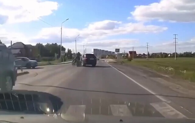 Момент ДТП в Тюмени: водитель питбайка погиб от столкновения с автомобилем