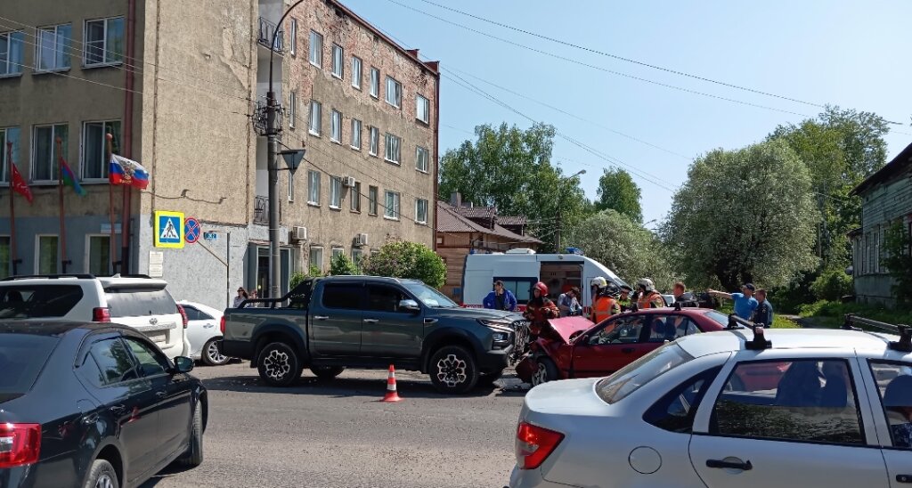 Момент лобового столкновения в Сортавале: водитель пикапа выехал на встречную и устроил ДТП