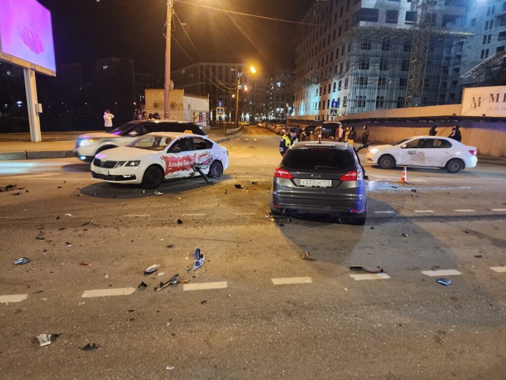 ДТП произошло 8 марта на пересечении набережной Чёрной речки и Выборгской набережной в Санкт-Петербурге. Ford налетел на бордюр, перевернулся, вылетел на встречную и столкнулся с несколькими автомобилями. Сообщается, что пострадали два человека.