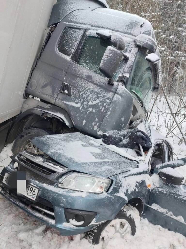ДТП произошло 13 февраля на трассе Екатеринбург — Серов. 21-летний молодой человек, управляя авомобилем «Лада Гранта», не справился с управлением и столкнулся со встречным большегрузом Scania.