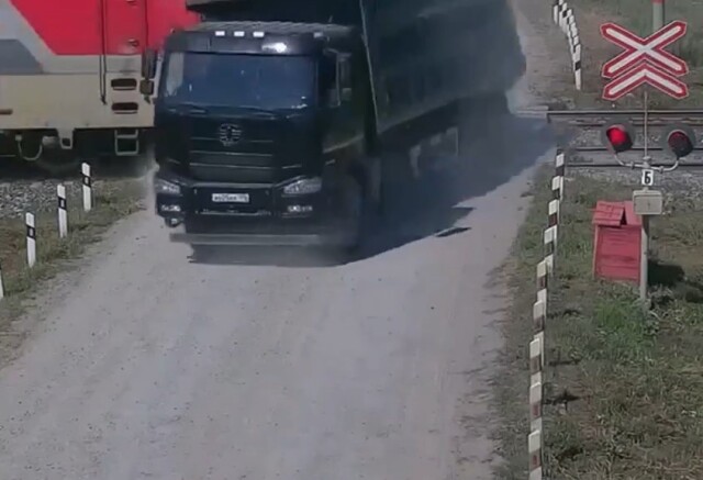На Транссибирской магистрали в городе Богдановиче Свердловской области 33-летний водитель грузовика «FAW» проигнорировал запрещающий сигнал светофора, что привело к столкновению с товарным поездом.