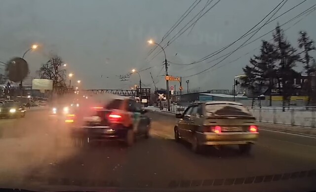 Водитель и пассажир «Лады», не долго думая, выскочили из машины и наказали виновника прямо на месте.