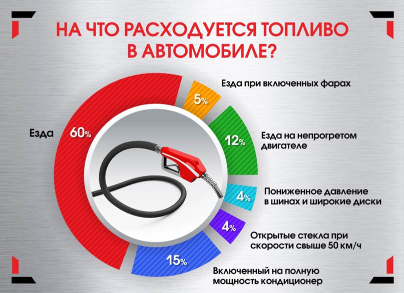 Езда на холодном, непрогретом двигателе, особенно в зимний период, также влияет на расход топлива.