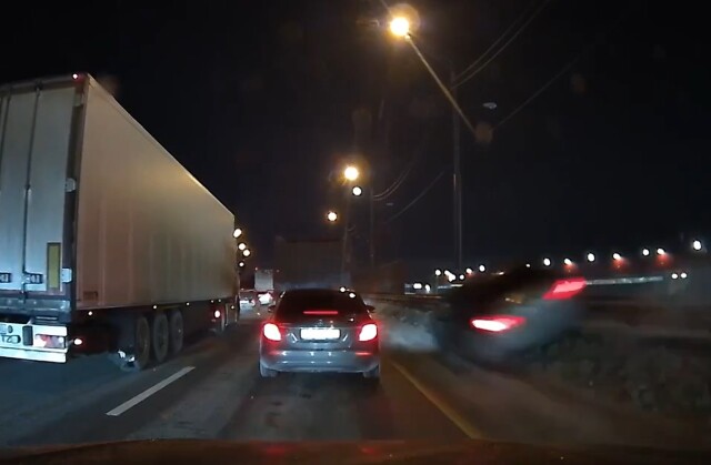 Видеорегистратор очевидца запечатлел необычного водителя, который объезжал пробку по обочине дороги.