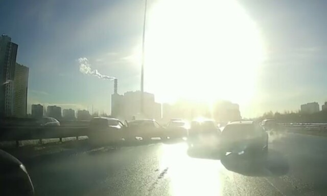 ДТП произошло на КАД рядом с Мурино в сторону Пискаревского. В левой полосе столкнулись сразу несколько автомобилей. Момент столкновения запечатлел видеорегистратор очевидца.