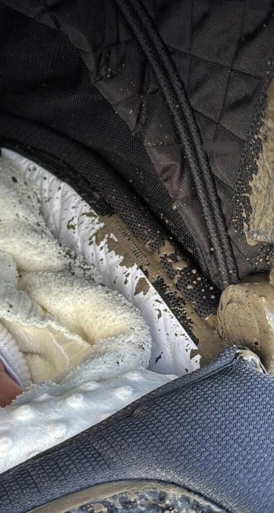 В Омске неизвестный водитель обрызгал грязью женщину, которая шла с коляской по тротуару.