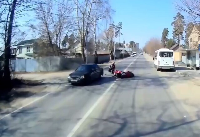 ДТП произошло в подмосковном Раменском. На улице 100-й Свирской Дивизии водитель автомобиля пытался развернуться и столкнулся с мотоциклом. К счастью, мотоциклист серьезно не пострадал.