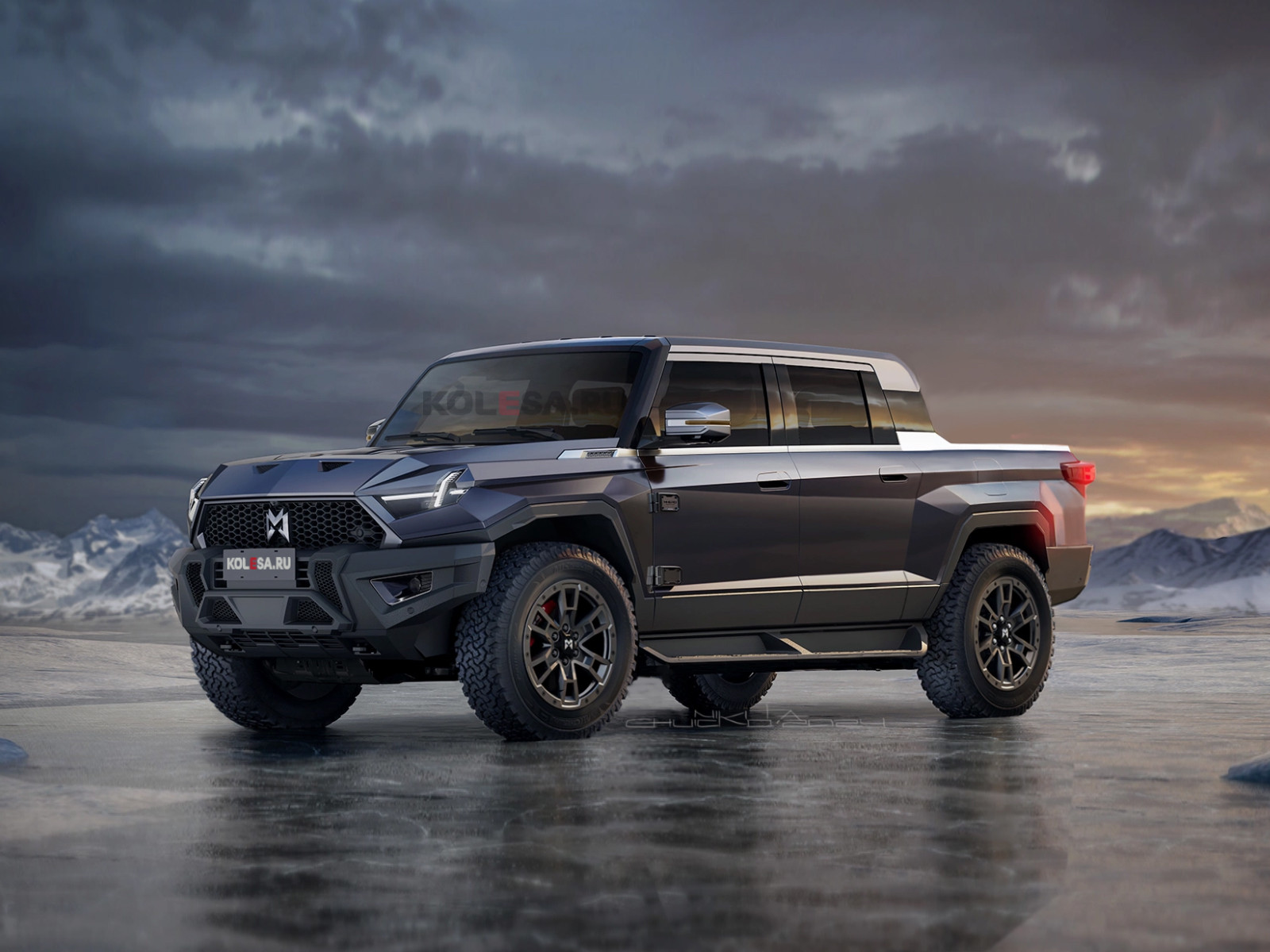 Рендер пикапа M-Hero Сегодня в России китайский внедорожник представлен только в гибридном варианте и в единственной комплектации, стоимость которой составляет 14 490 000 рублей.