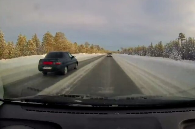 Обгон на зимней трассе едва не привел к ДТП