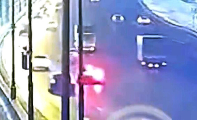 ДТП произошло на 67 километре МКАД. Водитель фургона не заметил другой стоящий в средней полосе фургон и совершил с ним столкновение. Происшествие попало в объектив камер.