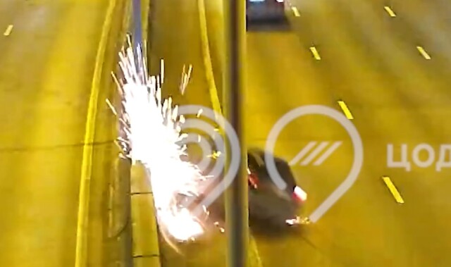 ДТП произошло на 83 километре МКАД. Водитель легкового автомобиля съехал на разделительную полосу, после чего резко дёрнул руль, ушёл в неуправляемый занос и врезался в ограждение. Происшествие попало в объектив камер.