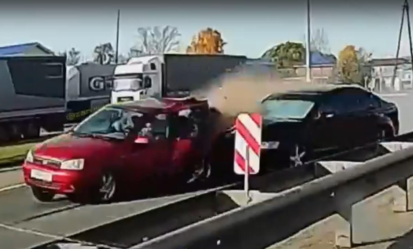 ДТП произошло на трассе М-7 в Цивильске в Чувашии. Водитель автомобиля «Лада Калина» пытался перестроиться в левую полосу, но в последний момент увидел летящий Volvo и передумал.