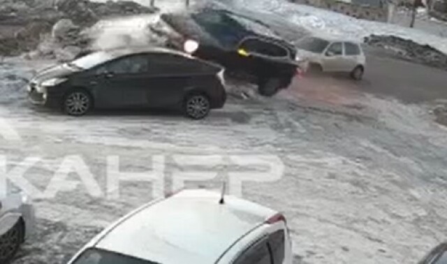 В объектив камеры уличного наблюдения попал момент ДТП в Благовещенске на улице Василенко. На видео видно, как водитель хетчбэка поворачивал налево, а водитель внедорожника его в этот момент обгонял. От удара внедорожник отбросило на припаркованную машину.