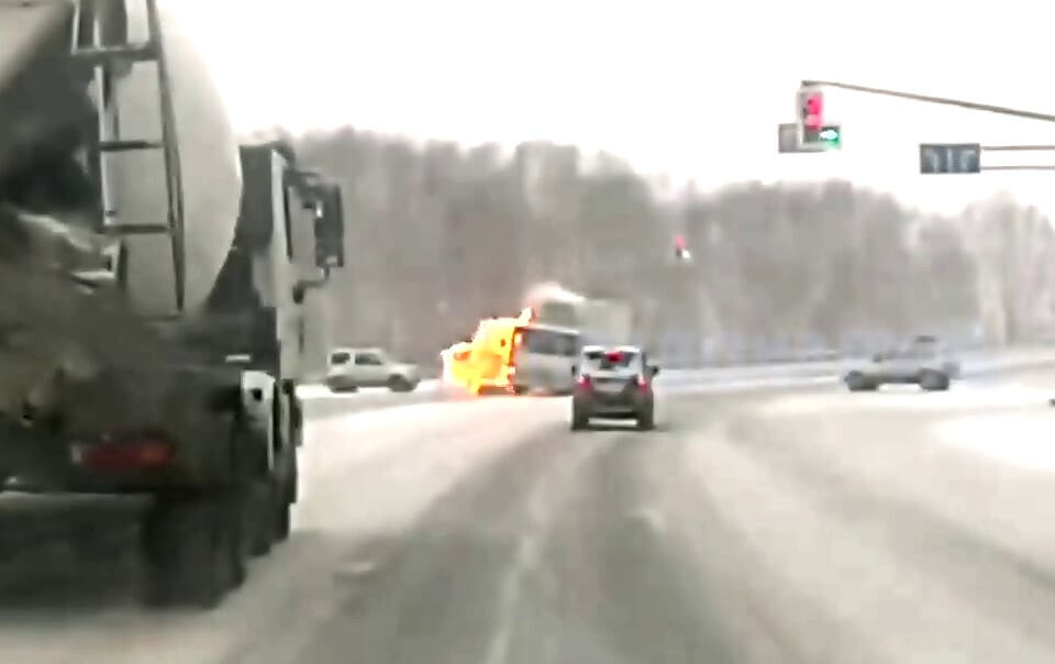 ДТП произошло сегодня в Петропавловске-Камчатском. На перекрестке столкнулись грузовик и минивэн. Последний от удара вспыхнул. К счастью, автомобиль не загорелся. Информации о пострадавших нет. Момент столкновения запечатлел видеорегистратор очевидца.