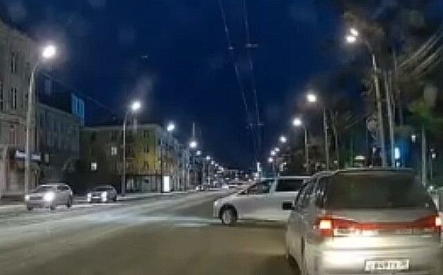На улице Ленина в Иркутске универсал занесло на трамвайных рельсах, в результате чего он едва не столкнулся с попутным автомобилем. Момент несостоявшегося ДТП попал в объектив видеорегистратора очевидца.