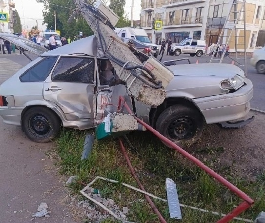 ДТП произошло 30 мая в городе Мичуринске Тамбовской области. На улице Лаврова 37-летний водитель автомобиля Lada Vesta двигался на запрещающий сигнал светофора и при повороте налево столкнулся с автомобилем ВАЗ-2114, который также двигаясь на запрещающий сигнал светофора. От удара «четырнадцатая» вылетела с дороги и врезалась в столб.