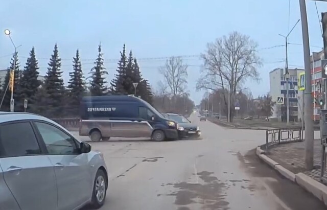 В башкирском городе Туймазы на одном из перекрестков фургон Почты России врезался в легковой автомобиль, водитель которого завершал маневр поворота налево. Момент ДТП попал в объектив видеорегистратора очевидца.